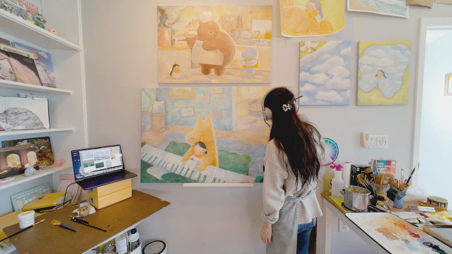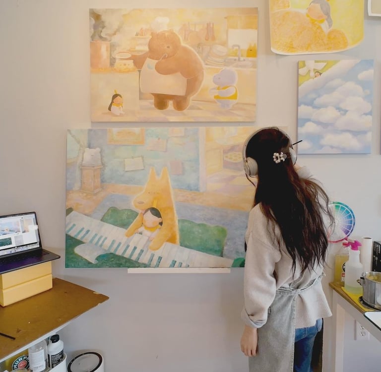 Jau Wing Hei (b. 1995, British Columbia, Canada) is a painter & illustrator working primarily in oils. Inspired by lived moments and intimate memories, her large-scale oil paintings grow from a common place within all of us. Her work gives sustained attention to softness, play and the joy of being with someone who loves you.